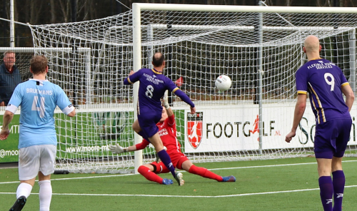 Met nog ruim een kwartier op de klok mocht George een vrije trap van de rechterkant nemen. De fraai aangesneden bal kwam terecht op het hoofd van mede-aanvaller Van Nieuwkerk. De lange spits verlengde de bal voldoende om doelman Vlot te verschalken. Even later zag invaller Jayson Halman zijn schot net naast het doel belanden. Aan de andere kant was het Boulamhayan die doelman Ruben Valk tot een redding dwong.